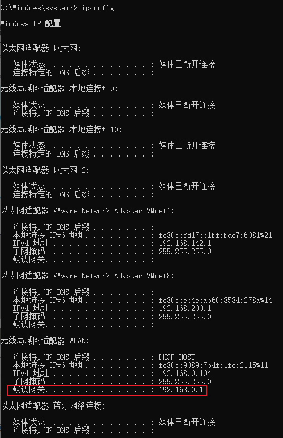 # 查看windows本地IP