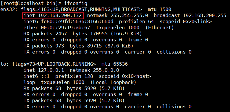 ifconfig命令查看linux系统的ip地址inet就是本台linux机器的对外ip