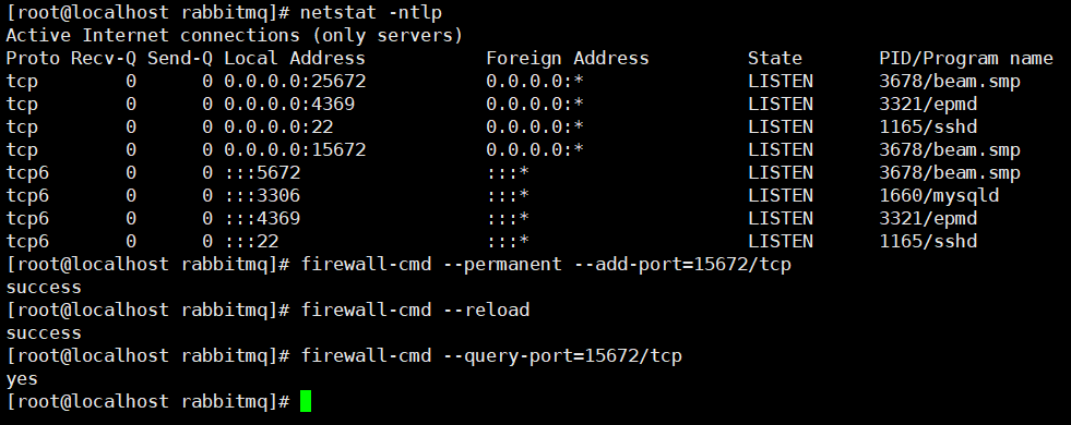 firewall-cmd --query-port=3306/tcp- 查询3306端口是否开放
